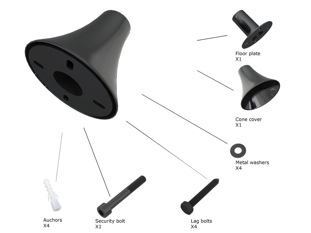 M Floor To Ceiling Wall Plate Black - Floor To Ceiling Wall Plate, Part for Pro Series, steel and plastic mounts to concrete and wood - black
