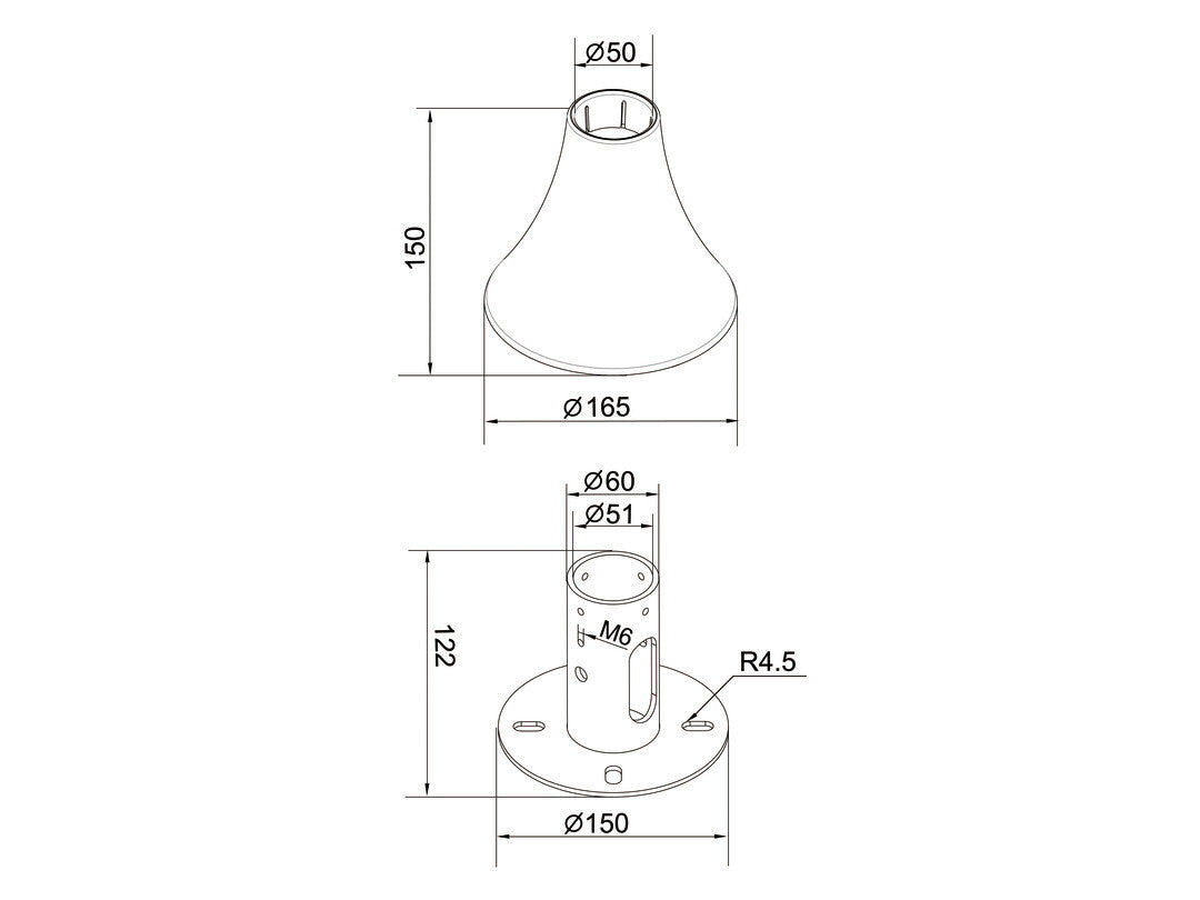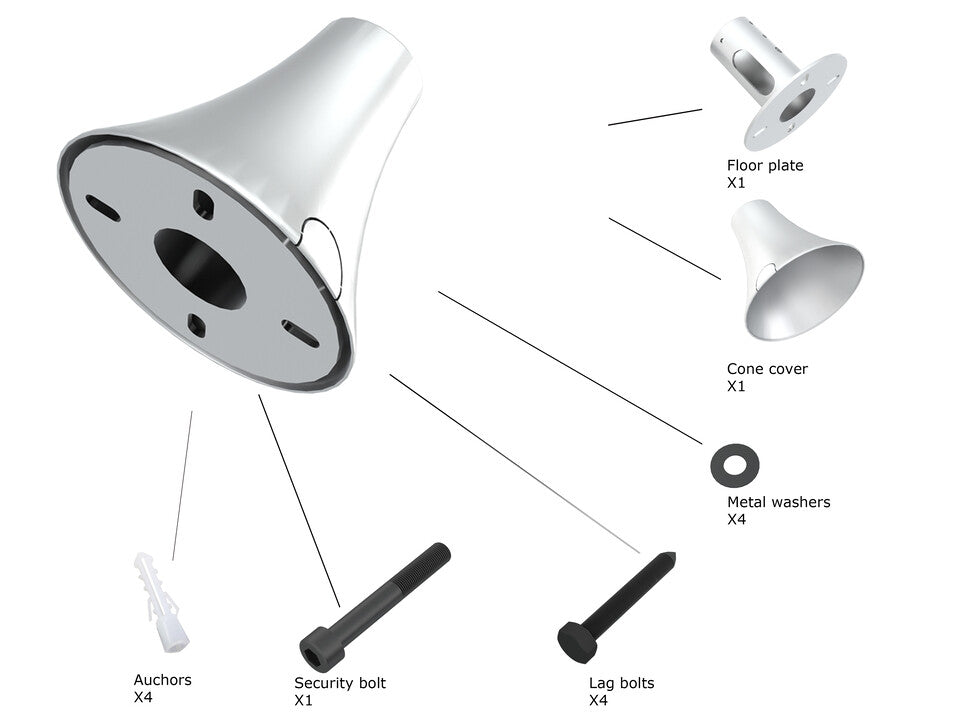 M Floor To Ceiling Wall Plate Chrome - Floor To Ceiling Wall Plate, Part for Pro Series, steel and plastic mounts to concrete and wood - chrome