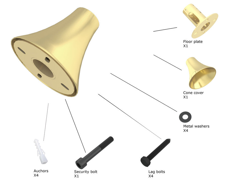M Floor To Ceiling Wall Plate Brass - Floor To Ceiling Wall Plate, Part for Pro Series, steel and plastic mounts to concrete and wood - brass