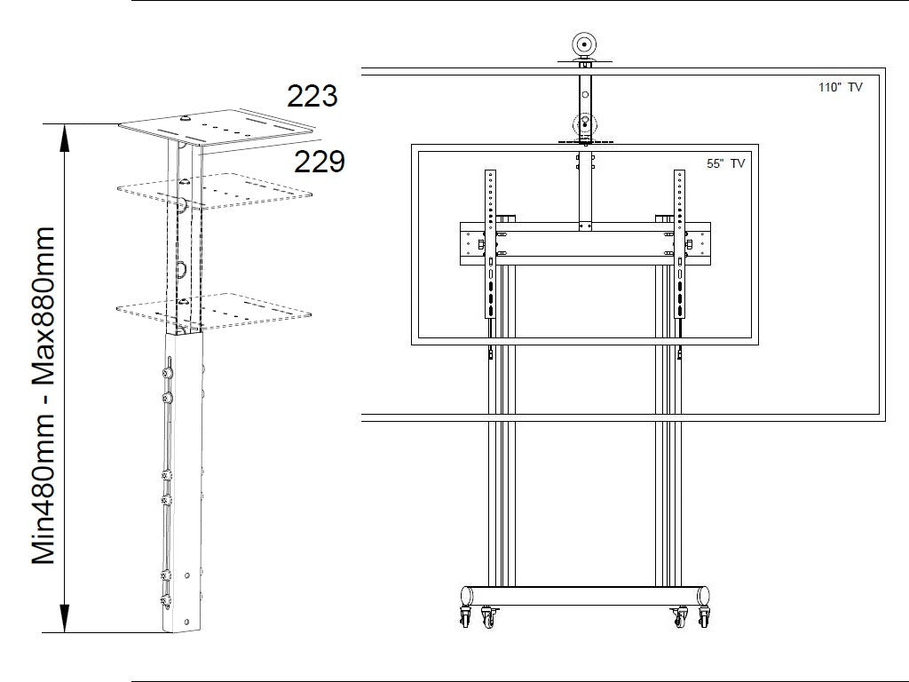 This shelf suitable for videoconferencing cameras and such is designed to fit perfectly with the M Public Floorstand series.