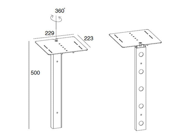 The pillar of the camera shelf is easy adjustable and can be placed in any ideal height. The shelf also features four holes for securing the camera to the shelf with ease.