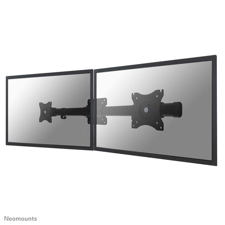 The Neomounts dual monitor adapter, model FPMA-CB100BLACK is a twin screen mounting rail allowing two monitors/flat screens to be mounted on one monitor mount. Slide screens from left to right to fit side-by-side display. Provides independent screen adjustments and freely move the monitors along the horizontal rail without using tools.