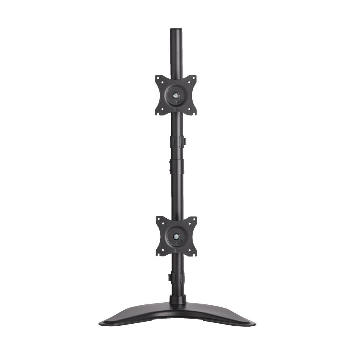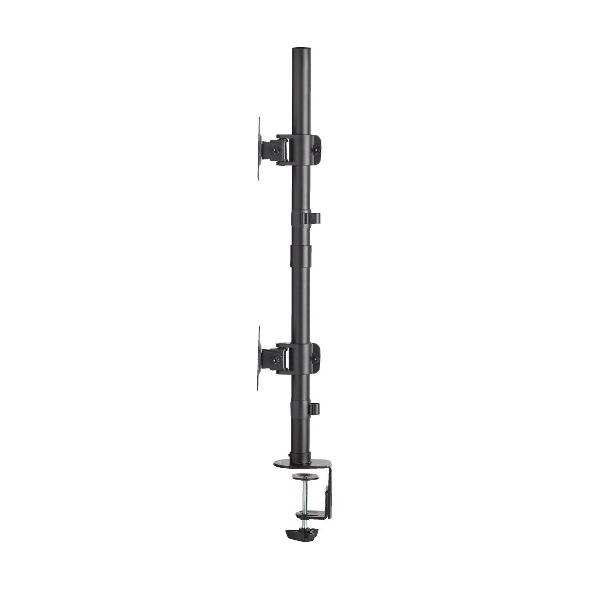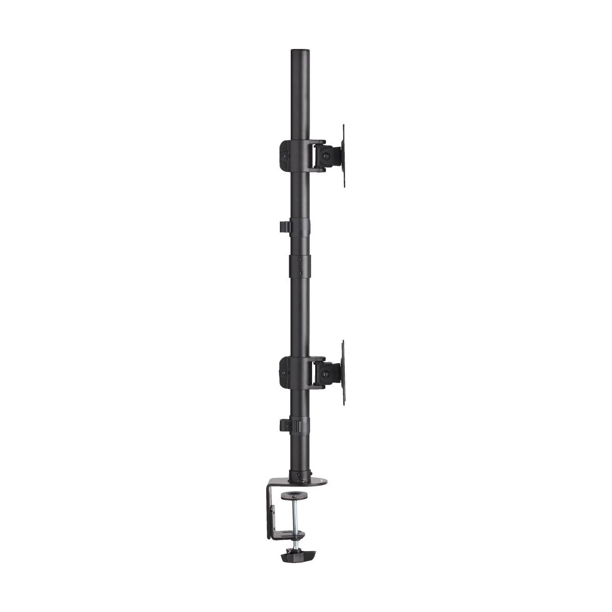 The VESA-compliant DDR1527SDC Dual Vertical Flat-Screen Desk Stand/Clamp Mount frees up valuable space on your desk, table or workstation by allowing you to mount two flat-panel displays on a vertical pole. Ideal for home or office, the DDR1527SDC fits most flat-panel displays from 15 to 27 inches. You can use it as a desktop stand or clamp it to a flat surface up to three inches thick.