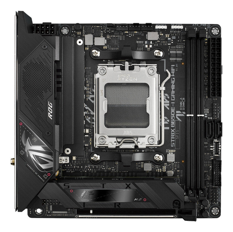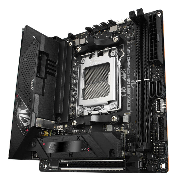 Build your next rig with an AMD Ryzen™ 7000 Series processor and ROG Strix B650E-I Gaming WiFi to experience advanced performance. With up to 16 “Zen 4” cores and 32 threads, boost clocks of up to 5.7GHz, and 80MB cache, the AMD Ryzen™ 7000 Series keeps you ahead of the game.1