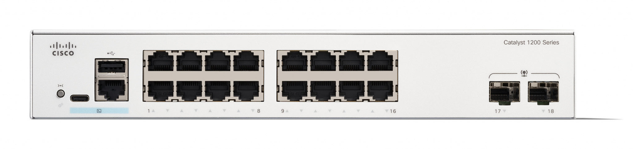 The Cisco Catalyst 1200-16T-2G switch is the next generation of affordable, smart switches that combine powerful network performance, security and reliability with a comprehensive suite of network features you need for a solid small business network.