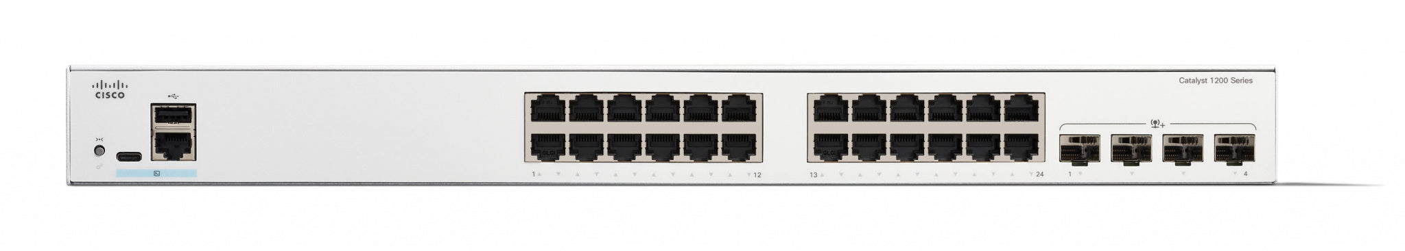 The Cisco Catalyst 1200-24T-4X switch is the next generation of affordable, smart switches that combine powerful network performance, security and reliability with a comprehensive suite of network features you need for a solid small business network.