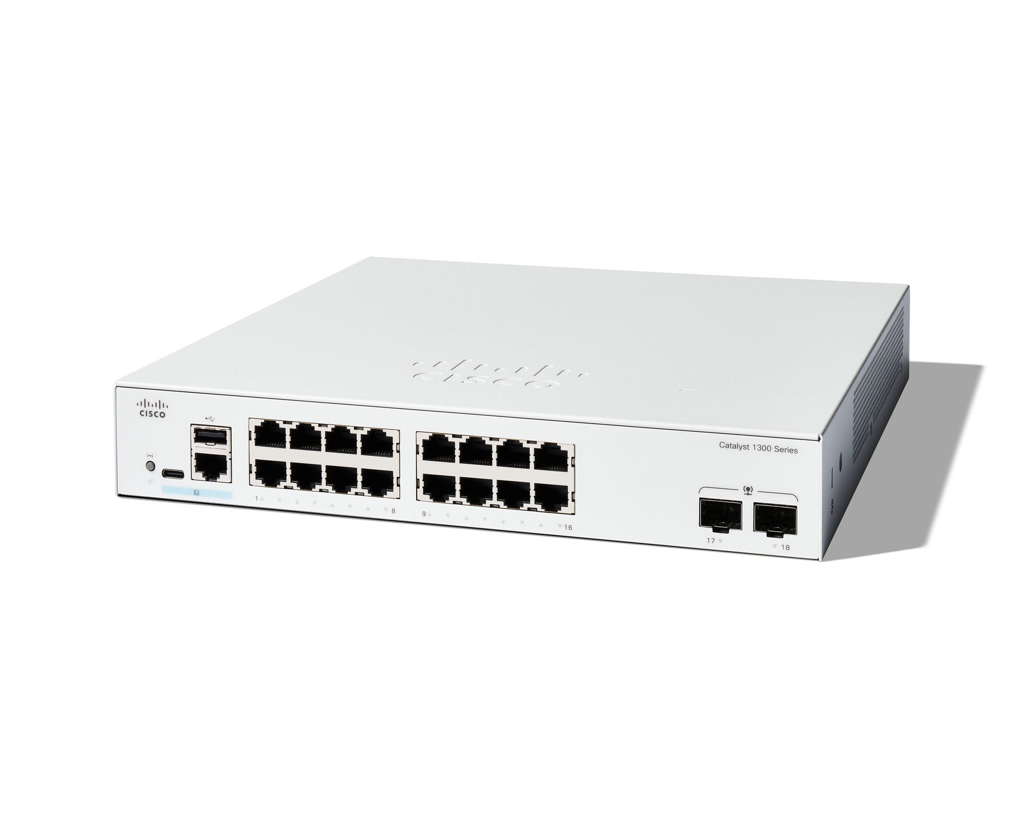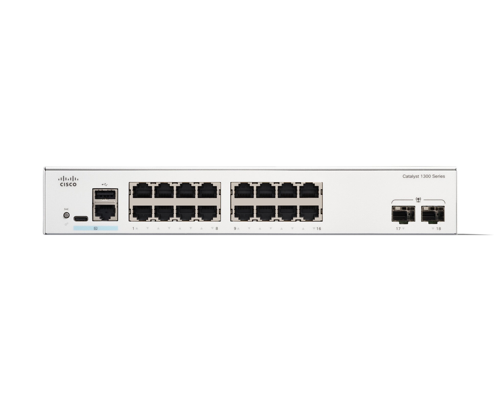 The Cisco Catalyst 1300-16T-2G switch is part of the fully managed switch line that delivers reliable and secure connectivity for small business networks. These switches accelerate your digital transformation by delivering full Layer 2/3 capabilities, an intuitive web dashboard, advanced networking features and PoE+ support.