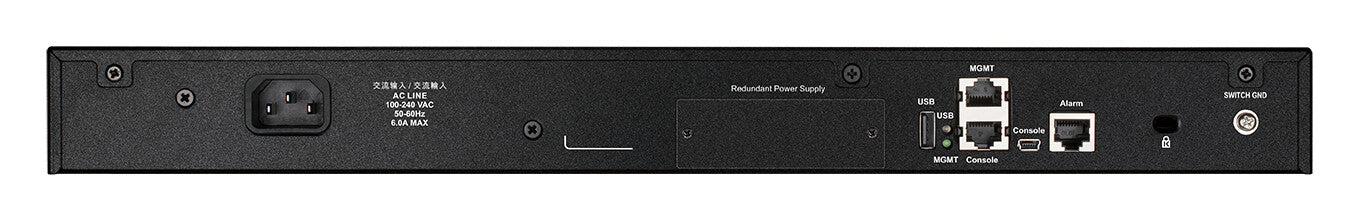A mini-USB console port allows the DGS-3630 Series to be managed without any extra connectors, and a USB Type A port can be used to store logs, configuration, and firmware images.