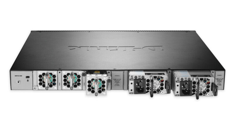 The DXS-3400 Series switches feature front-to-back airflow which optimizes air circulation inside the rack, supports hot and cold aisles in data centers, and increases energy efficiency. The switches also feature in-built smart fans. Internal heat sensors monitor and detect temperature changes, and react accordingly by utilizing different fan speeds for different temperatures. At lower temperatures, the fans will run more slowly, reducing the switch’s power consumption and noise.