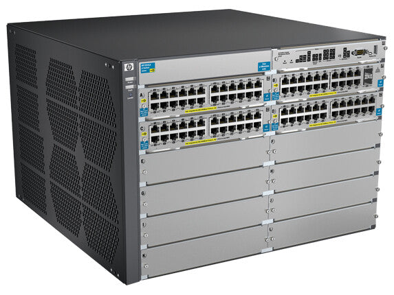 The HP 5400 zl Switch Series consists of advanced intelligent switches in the HP modular chassis product line, which includes 6-slot and 12-slot chassis and associated zl modules and bundles. The foundation for the switch series is a purpose-built, programmable ProVision ASIC that allows the most demanding networking features, such as Quality of Service (QoS) and security, to be implemented in a scalable yet granular fashion. With 10/100, Gigabit Ethernet, and 10 Gigabit Ethernet interfaces; choice of PoE+ and non-PoE; integrated Layer 3 features; and HP AllianceOne solutions, the 5400 zl switch series offers excellent investment protection, flexibility, and scalability, as well as ease of deployment, operation, and maintenance.