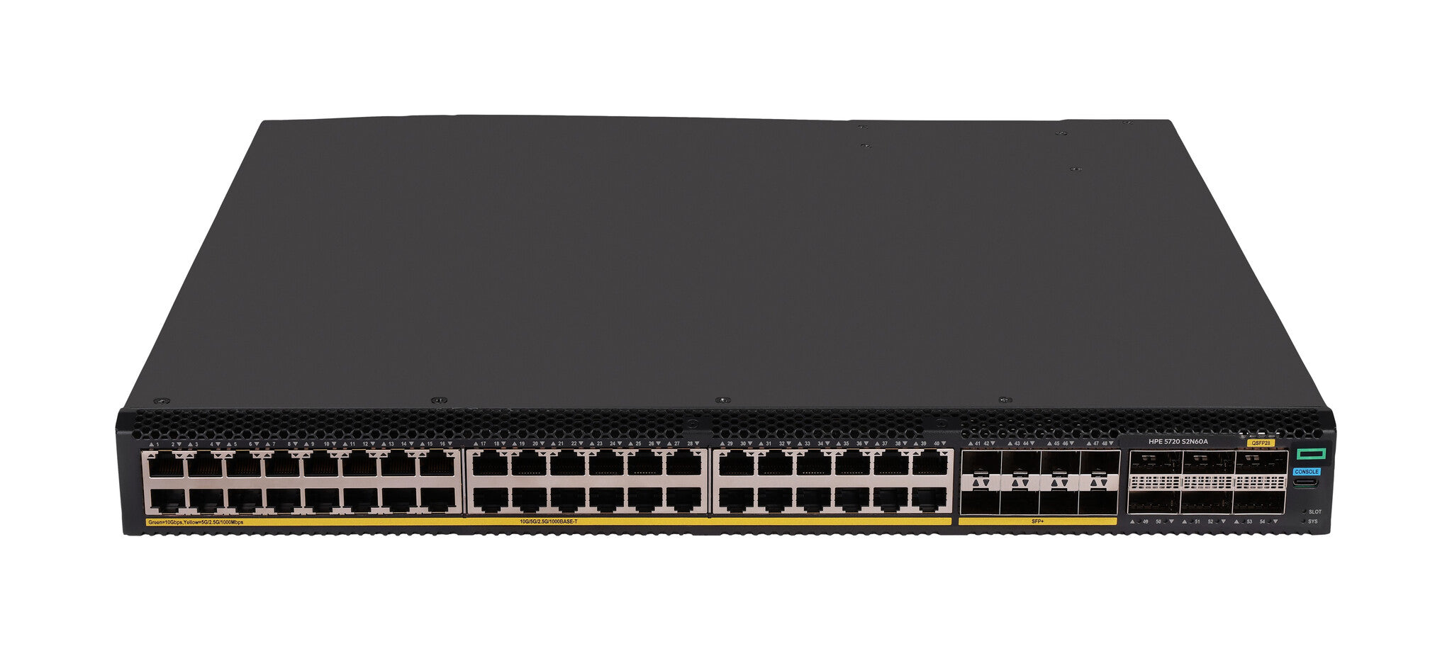HPE Networking Comware Switch Series 5720 is designed to cater to diverse customer needs. This cost-effective access switch offers hybrid SFP+ and 10GBASE-T options, along with multigigabit support on 10GBASE-T ports, allowing scalability from 10GbE SFP+ to 100G QSFP28. These data center leaf / access layer switches come with MACsec support and 10GBASE-T additional modules. Features such as distributed resilient network interconnect (DRNI) and HPE Intelligent Resilient Fabric (IRF) enhance network resiliency while redundant pluggable power supplies provide a dynamic and highly available network. Moreover, these switches support HPE Intelligent Management Center (IMC), which delivers a consistent network manageability experience. Streamline network management processes for greater efficiency through centralized configuration, compliance, policy management, monitoring, and troubleshooting.
