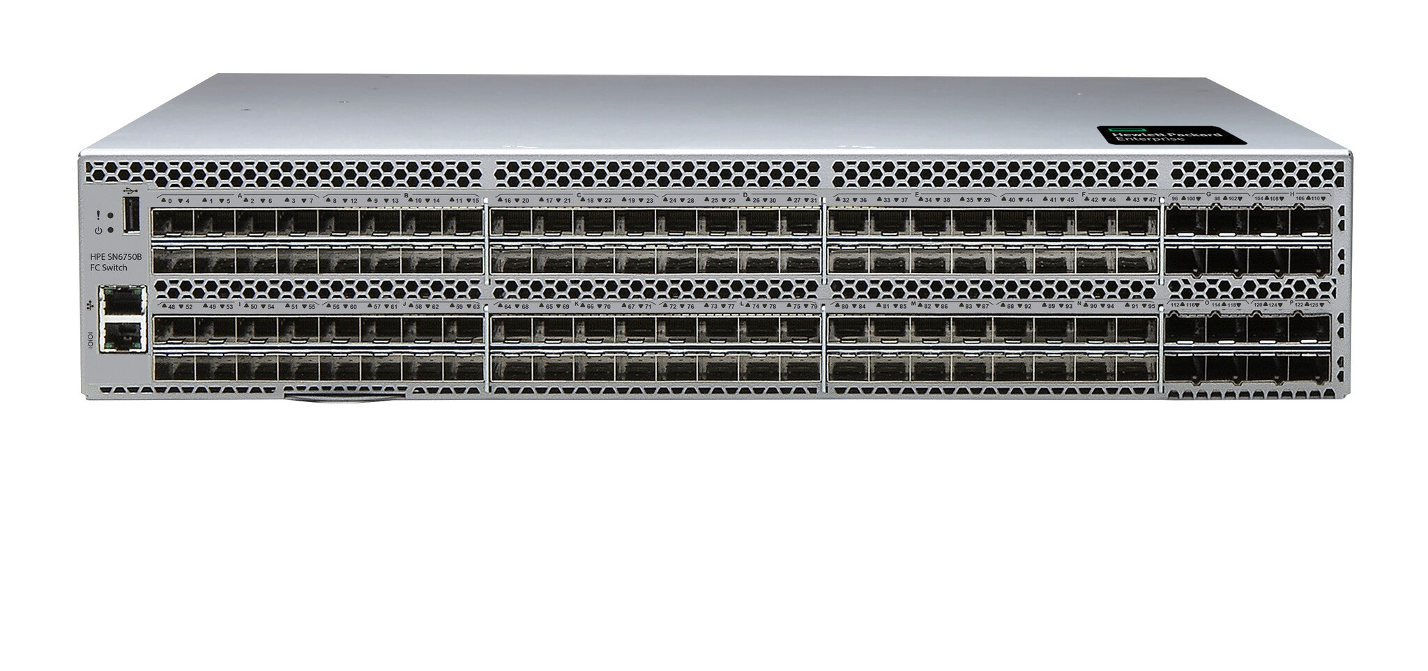 Are you struggling to meet the I/O demands of hyper-scale virtualization, large cloud infrastructures, and growing flash-based storage environments? The HPE Storage Fibre Channel Switch B-series SN6750B is an ultra-dense, high-performance, highly scalable, enterprise-class storage networking switch delivering Gen7 64Gb Fibre Channel capabilities. It is designed to support data growth, demanding workloads, and data center consolidation in large scale enterprise infrastructures. Delivering 64Gb performance and high port density, it accelerates data access, adapts to evolving requirements, and drives 24x7 businesses. It can scale from 48 to 128 ports with Port On Demand (POD) upgrades in a 2U package enabling organizations to create high-scale fabrics in less space. In addition, with a 50% latency reduction compared to the previous generation and no oversubscription, the switch improves performance of NVMe storage and high-transaction workloads.[1]