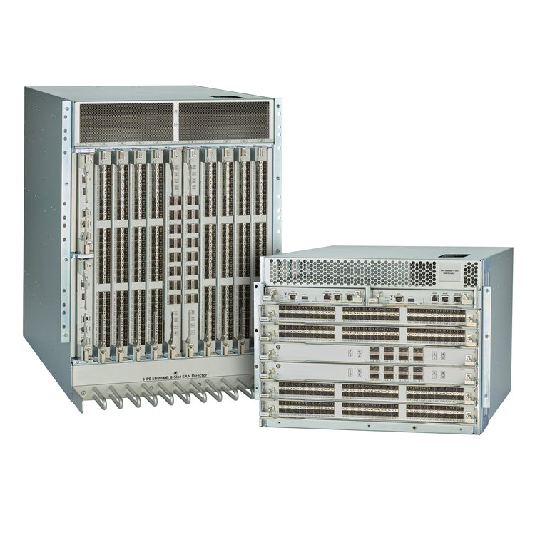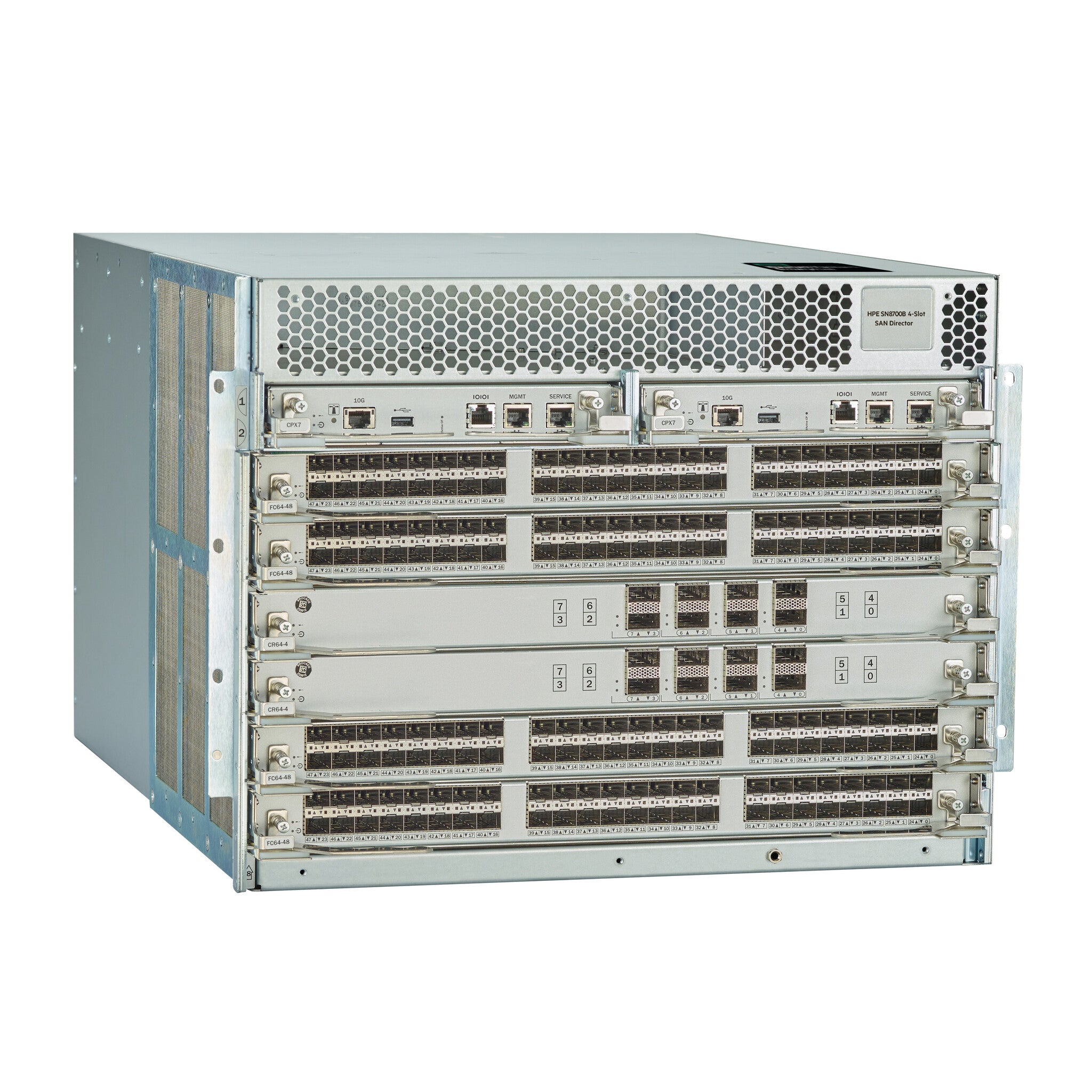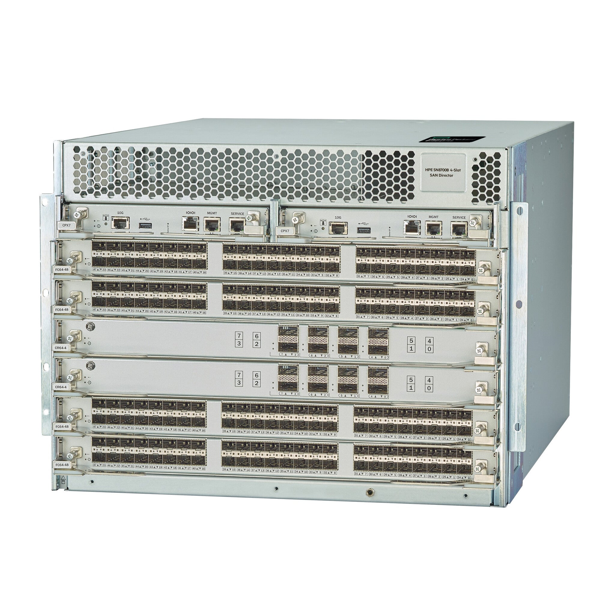 Are you looking to modernize your storage-networking infrastructure to efficiently meet the dynamic and growing demands of your business? With more reliable data access and procedures to reduce human error, the HPE Storage SAN Director Switch portfolio delivers a powerful Fibre Channel (FC) and multiprotocol switching infrastructure that can massively scale in a smaller footprint and unleash the full performance of flash and emerging NVMe-based storage. It provides a mission-critical, scalable, and high-performance foundation for enterprise data centers with private and hybrid-cloud deployments and highly virtualized environments. The HPE Storage SAN Director Switch portfolio contains the HPE Storage Fibre Channel Switch SN8700B and HPE Storage Fibre Channel Switch SN8600B switch. The HPE Storage SAN Director Switch is offered in 8-slot and 4-slot chassis providing up to 512 64Gb/s with up to 32 QSFP based ICLs equivalent to 128 FC ports.