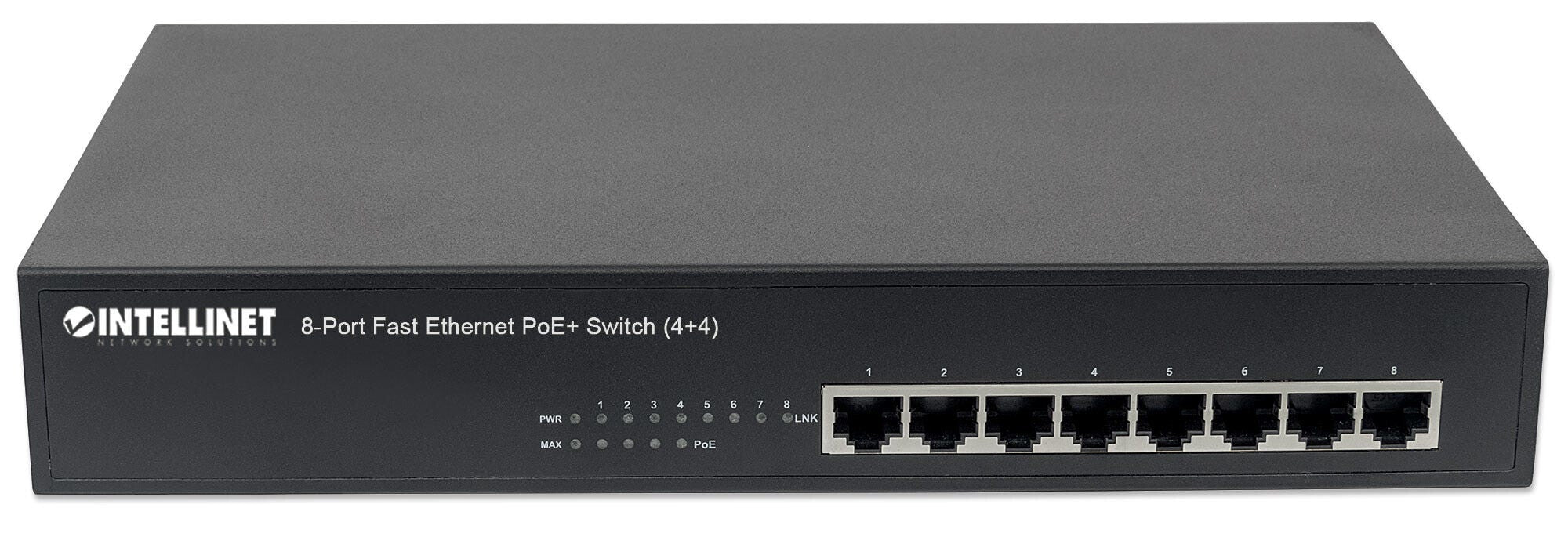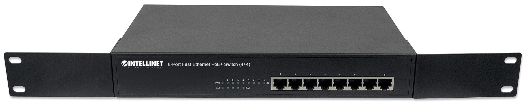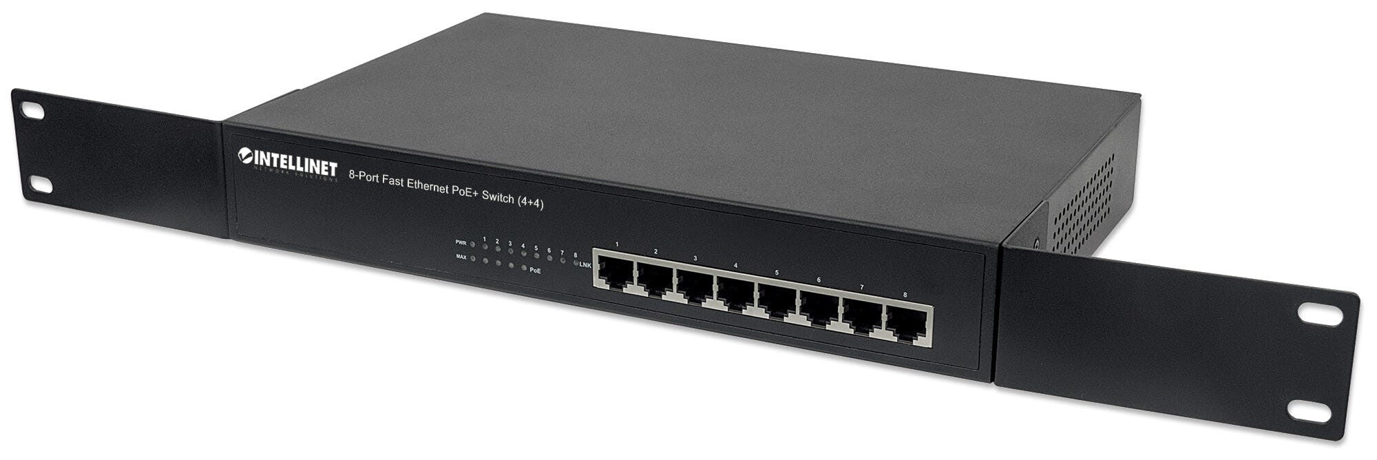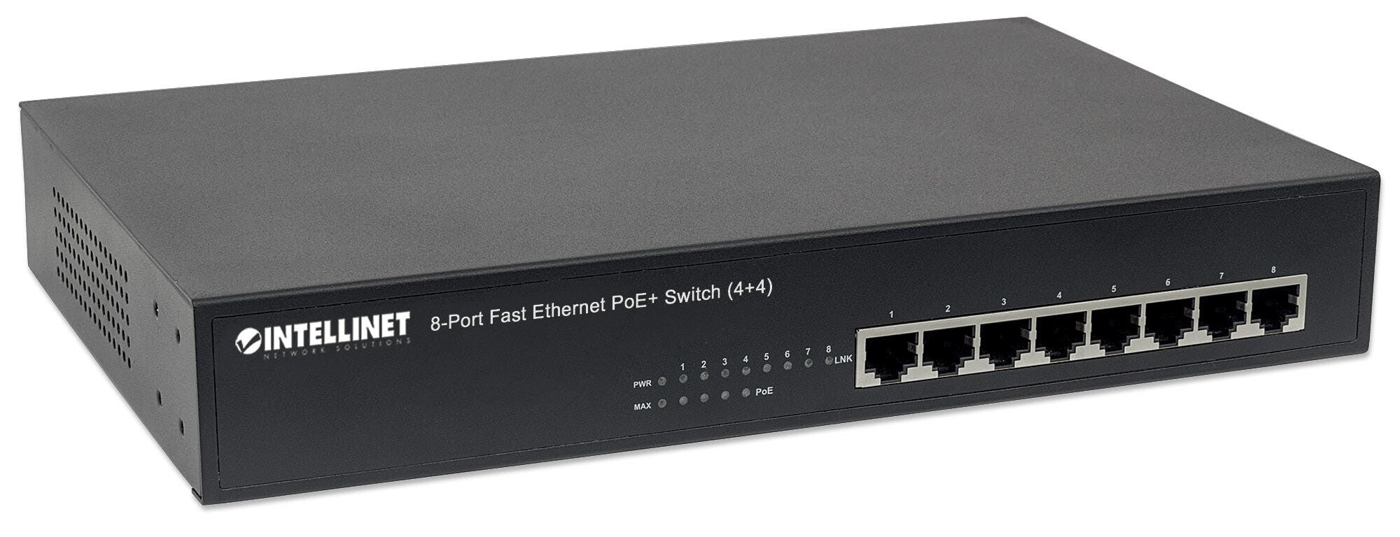 Intellinet 8-Port Fast Ethernet PoE+ Switch, 4 x PoE IEEE 802.3at/af Power-over-Ethernet (PoE+/PoE) ports, 4 x Standard RJ45 Ports, Endspan, Desktop, 19" Rackmount, Box