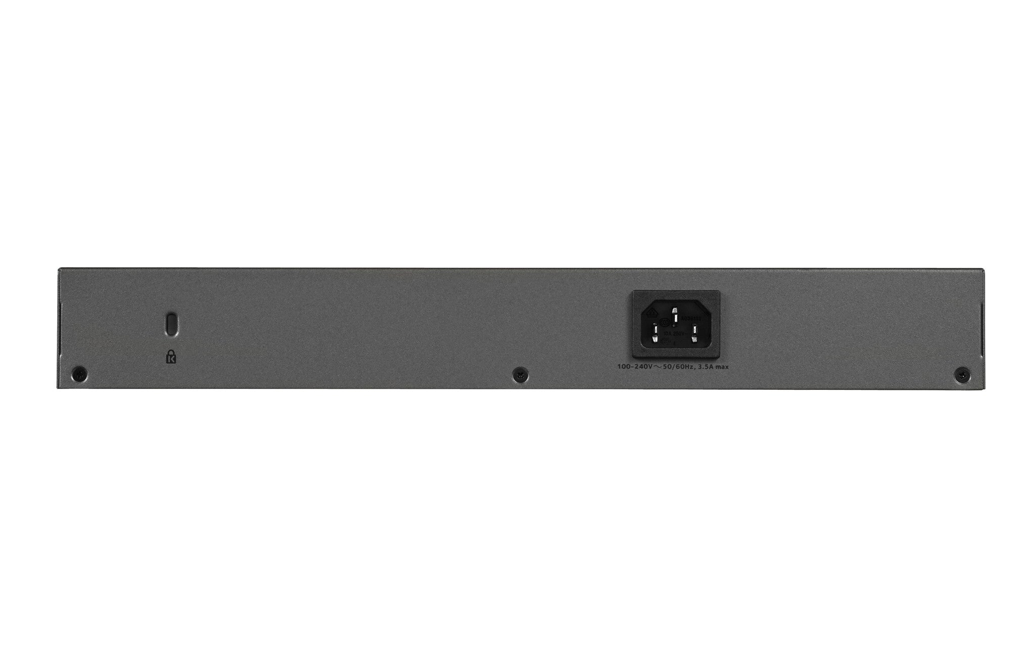 The GS418TPP Easy Mount 16-Port Gigabit Smart Managed Switch with PoE+ and 2 SFP Ports is future-proof with 240W of PoE budget and ideal for “Virtually Anywhere deployments. Slim design (3.94 inches, 10 cm deep) and mounting accessories allow for access point, IP camera or VoIP endpoint placement optimization and cabling efficiency even outside the rack. The GS418TPP supports Easy Mount quiet operation or rack mounting with a maximum of 33dB at full power and 25°C (77°F) ambient