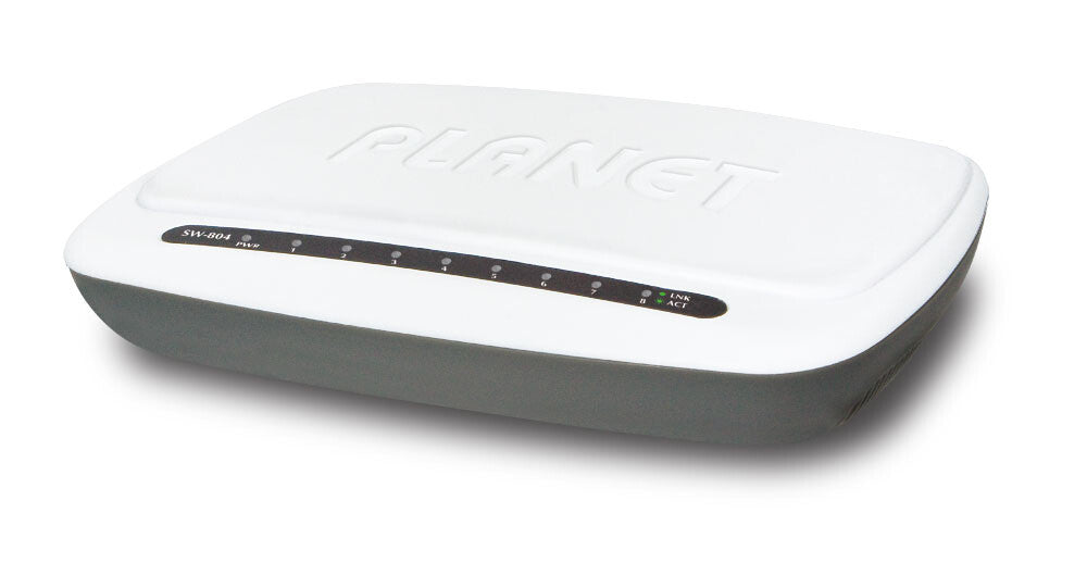 PLANET Fast Ethernet Switch SW-804 provides business and home users with a cost-effective integrated system of small-office / home-office networking. It is with compact-sized plastic case design and just right for the network of 10 to 50 users.
