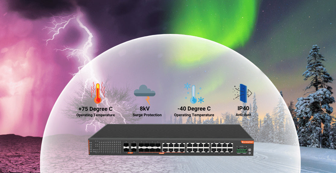 In areas where effective use of space and interconnectivity are vital, for example large scale enterprise networks, these Switches are ideal. They have an extended temperature range which enables them to continue their high-performance in unconditioned outdoor cabinets and industrial environments. Encased in a high strength metal enclosure, these Switches are designed to withstand the elements.