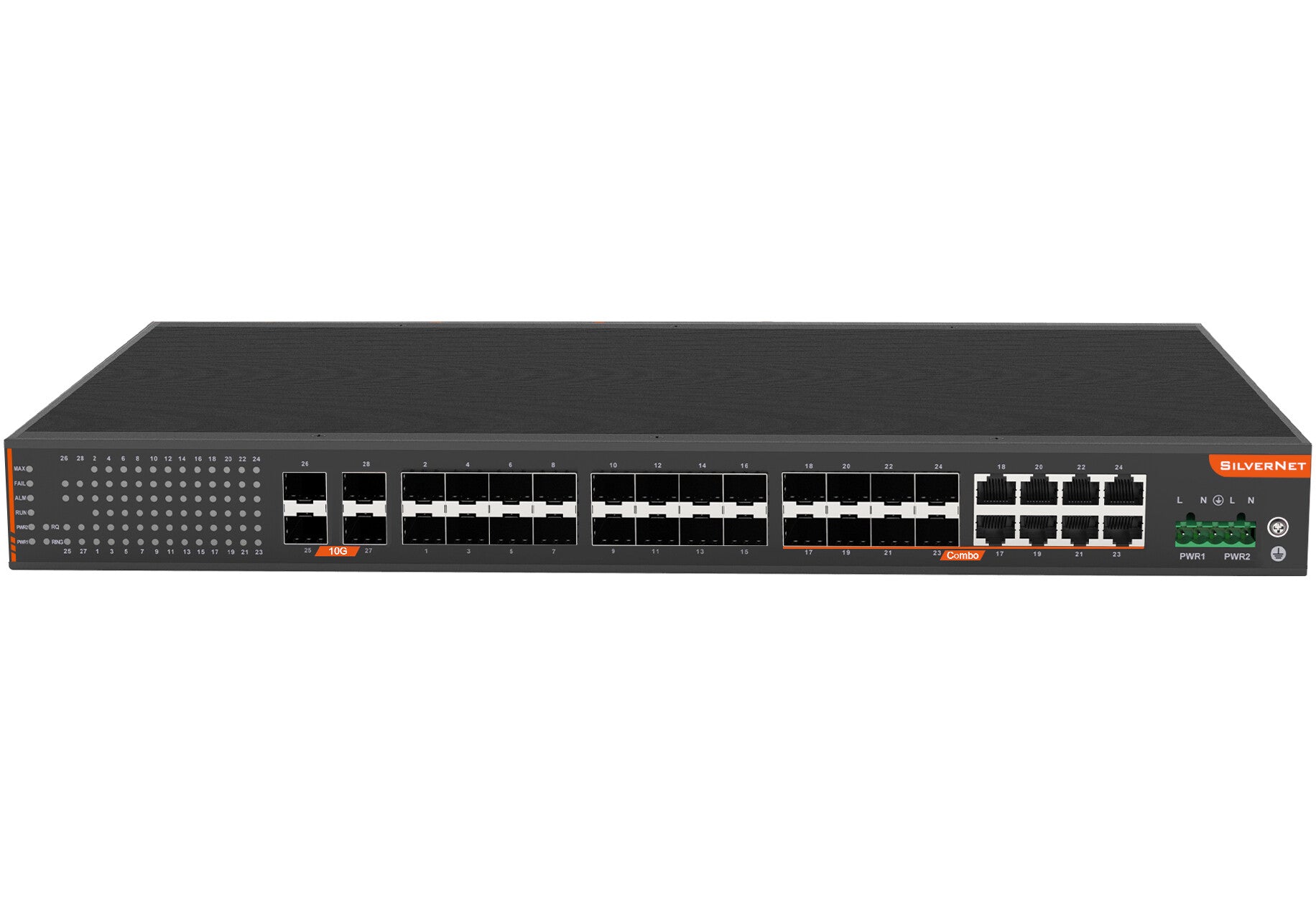 - 16 x SFP, 8 x RJ45 / SFP Combo, 4 x 10G SFP+ Ports