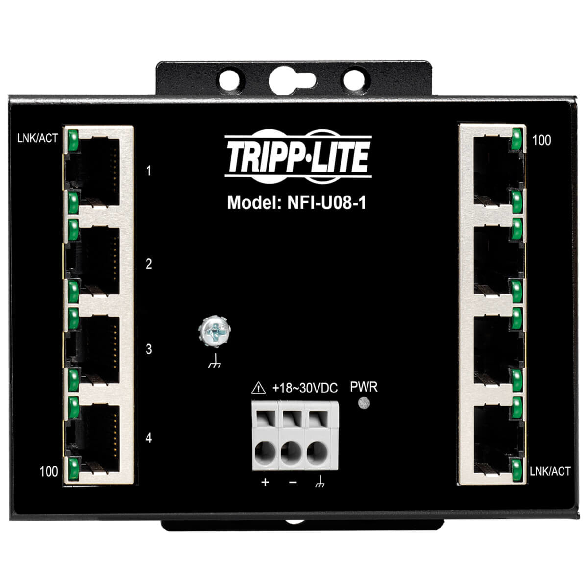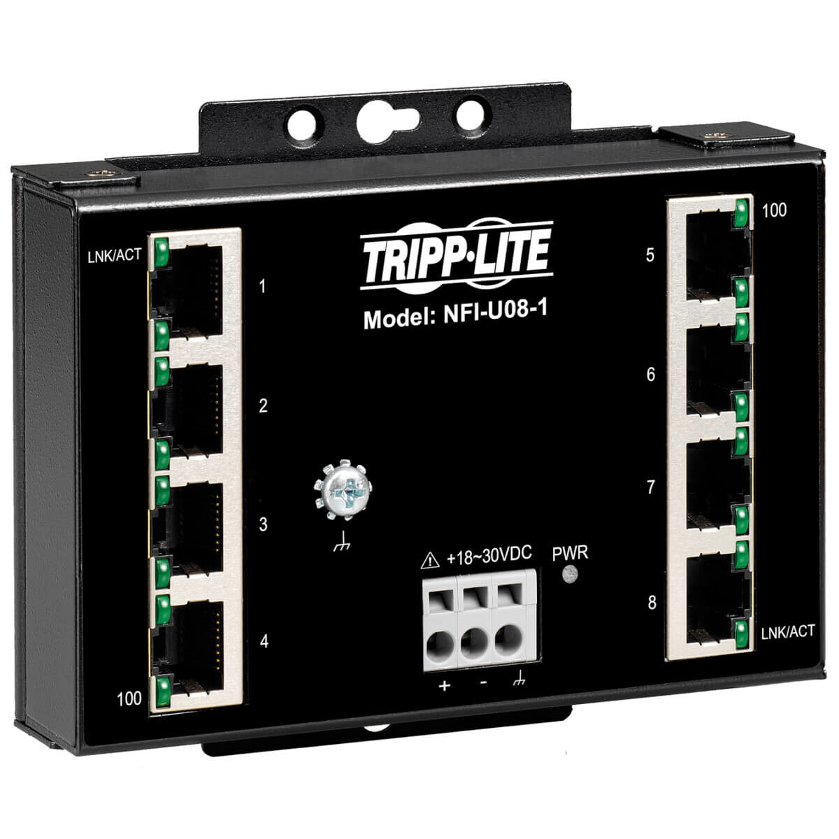 Tripp Lite NFI-U08-1 8-Port Unmanaged Fast Industrial Ethernet Switch - 10/100 Mbps, Ruggedized, -40° to 75°C, DIN/Wall Mount