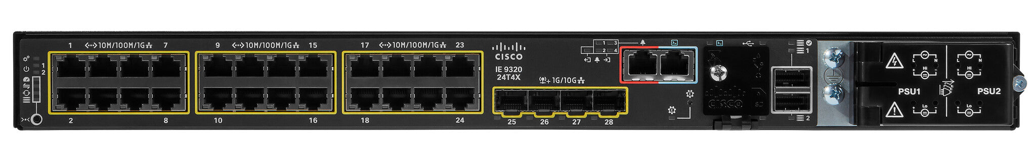 Cisco Catalyst IE9300 Rugged Series switches with 28 ports of Gigabit and 10 Gigabit Ethernet interfaces deliver high-speed Ethernet connectivity in a compact form factor and are designed for a wide range of industrial applications for which hardened products are required. The platform is built to withstand harsh environments in manufacturing, energy, transportation, mining, smart cities, and oil and gas. The switches are ideal for outdoor enclosures or harsh environments while adhering to overall IT network design, compliance, and performance requirements.