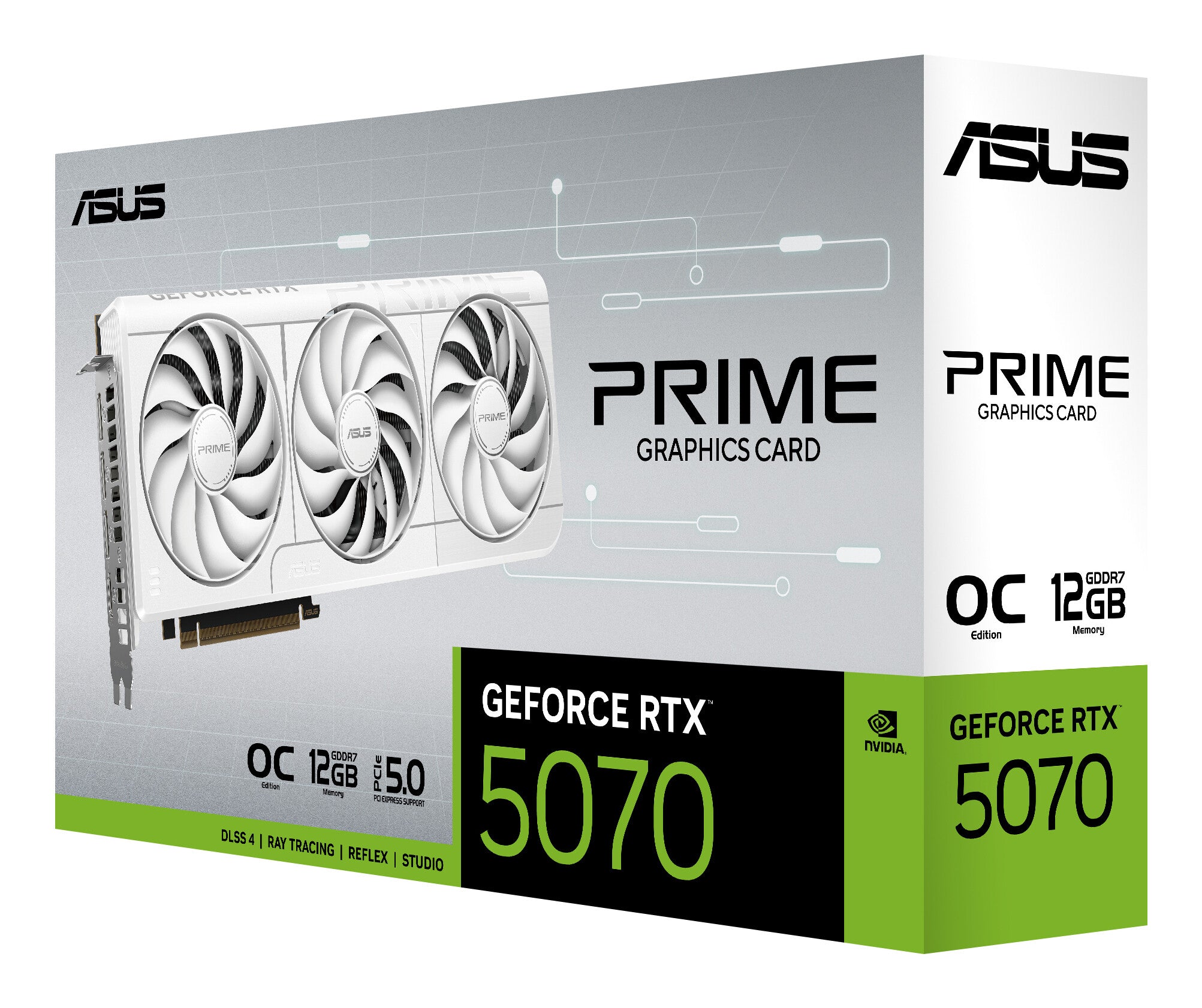 Experience Primal performance with the Prime GeForce RTX 5070 White Edition, an SFF-Ready Enthusiast GeForce Card featuring a 2.5-slot design for expansive compatibility, enhanced by a triple-fan setup for supreme airflow design for supreme cooling.