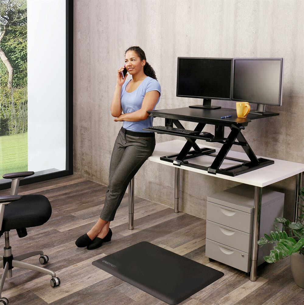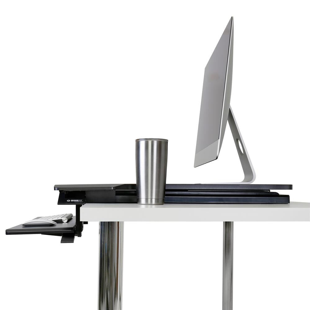 Thoughtfully designed to offer advanced ergonomics out-of-the box, this WorkFit™ adjustable standing desk moves you forward with a new standard in sit-stand. It fits more users with an X-shaped lift that folds close down to your desk to keep the right monitor-to-keyboard-tray spacing. With a height-adjustable, back-tilt keyboard that sits below the worksurface, this ultra-low sit-stand workstation delivers leading ergonomics when sitting and standing.