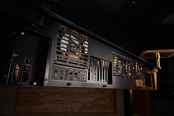 pc gamer, desk, water cooling, RGB, liquid cooling, gaming PC, radiator, dual system, large pc, tempered glass, height adjustable, pc mod, alluminum, massive componnent, PC desk, Luxury desk