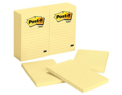 Post-it® Notes in 4 in x 6 in size are great for keeping daily to-do lists. Canary Yellow helps get your message noticed and keeps life simple. The lines help keep those tasks straight.