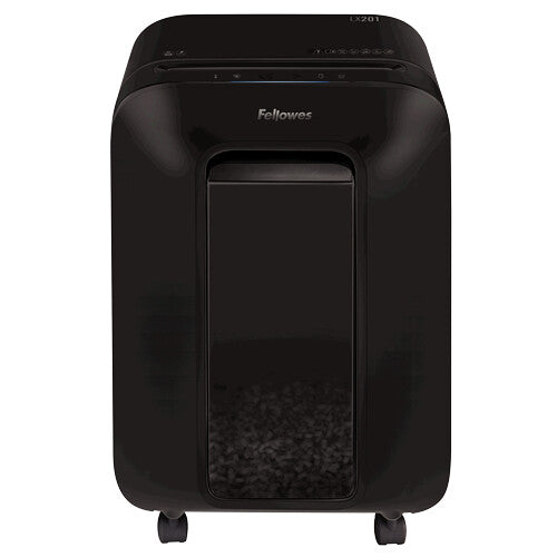 - SHRED SAFELY - This Fellowes paper shredder features patented Safesense Technology stops your LX201 from shredding when hands touch the paper entry which offers a greater peace of mind in home environments