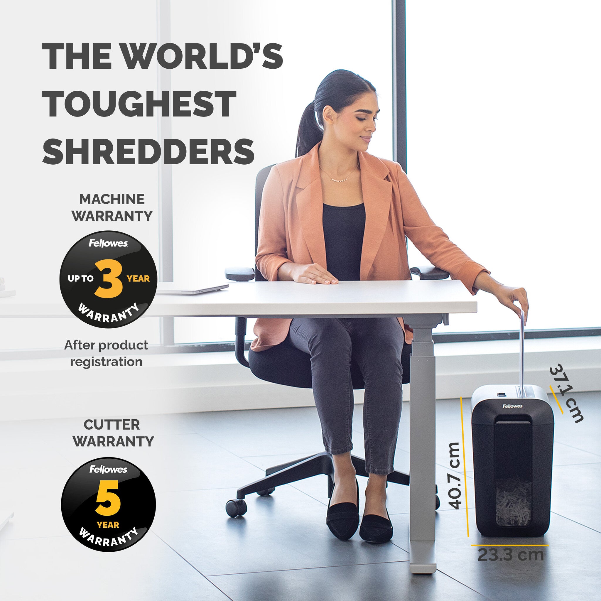 - WARRANTY - The LX65 paper shredder comes with a 2 year warranty (Register for an additional year at Fellowes.com) and a 5 year cutter warranty, including access to top quality customer support to help with any queries you may have