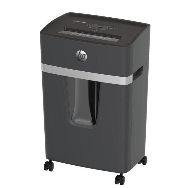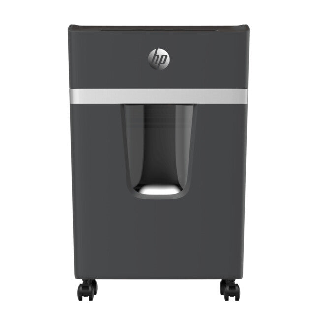 With a cutting capacity of 10 sheets, the compact HP Pro Shredder 10MC comes rolling in as the smallest document shredder from the HP Pro Shredder series. Nevertheless, this mobile helper holds its own in the micro cut and is therefore not only suitable for small office environments, but also for medical practices and law firms. The elegantly designed document shredder shreds your personal company data, patient files or process documents in micro cut into 2 mm x 15 mm clippings. This meets the requirements for the high security level P-5 and ensures destruction in accordance with the General Data Protection Regulation. Like the other HP Pro Shredders, the 10MC is pleasantly quiet and produces an operating noise of only 55 decibels.
