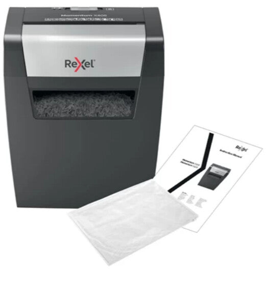 The power to shred more! The Momentum X406 paper shredder shreds up to 6 sheets (80 gsm) in to P-4 (4x28mm) cross cut pieces, with a 15L bin which holds 125 A4 sheets.