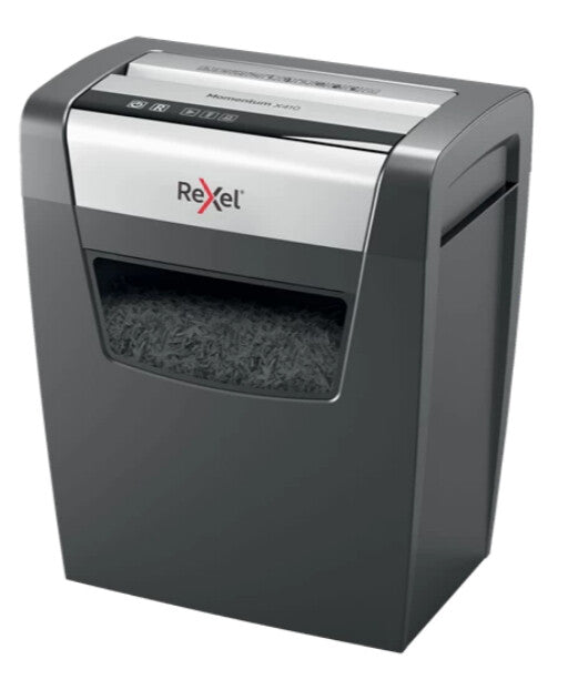 The power to shred more! The Momentum X410 paper shredder shreds up to 10 sheets (80 gsm) in to P-4 (4x28mm) cross cut pieces, with a 23L bin which holds 225 A4 sheets.