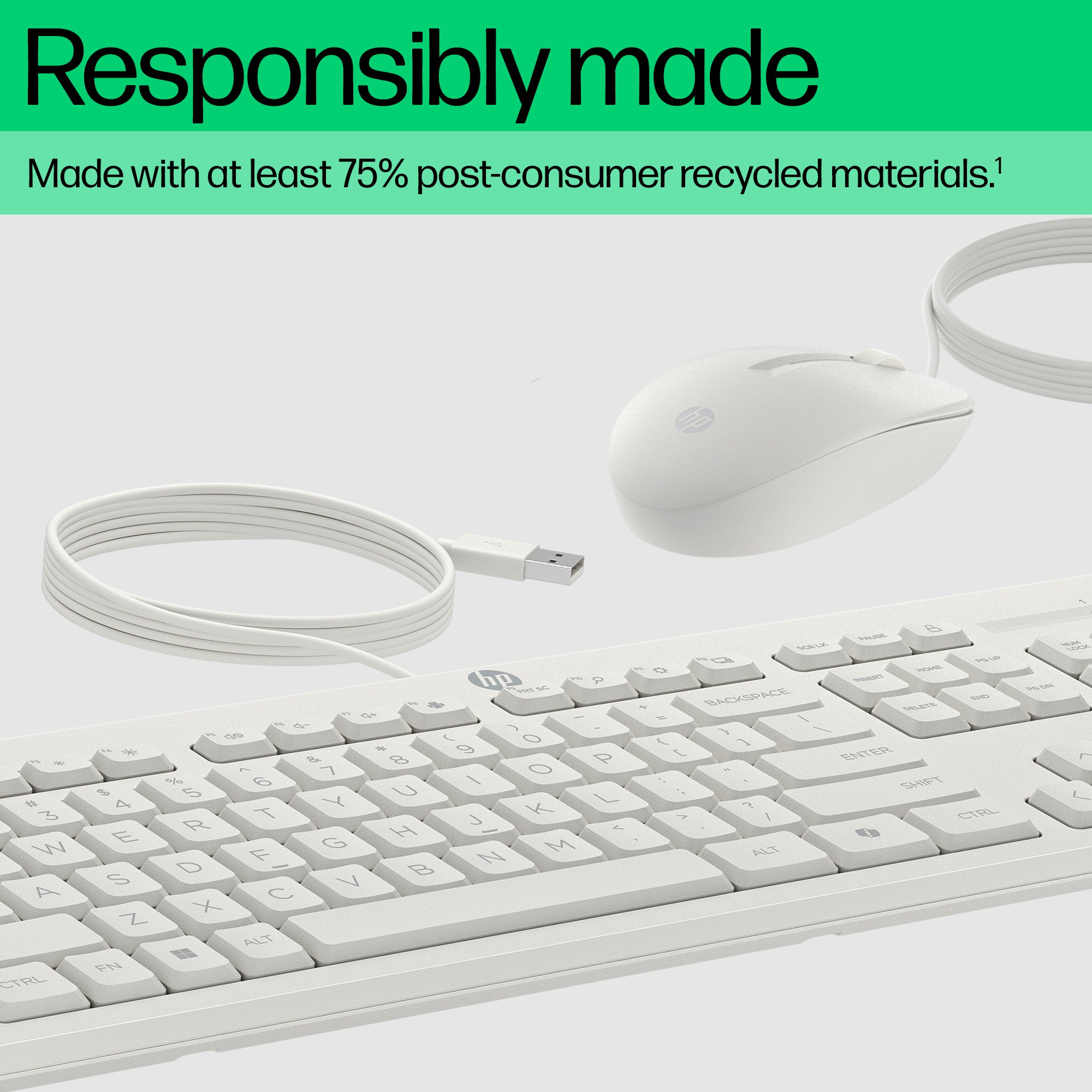 - You should feel good about the products you buy and use. Rest assured, this wired keyboard and mouse are made with at least 75% recycled plastic materials[2] and the printed circuit boards on both the keyboard and mouse are low halogen.[3]