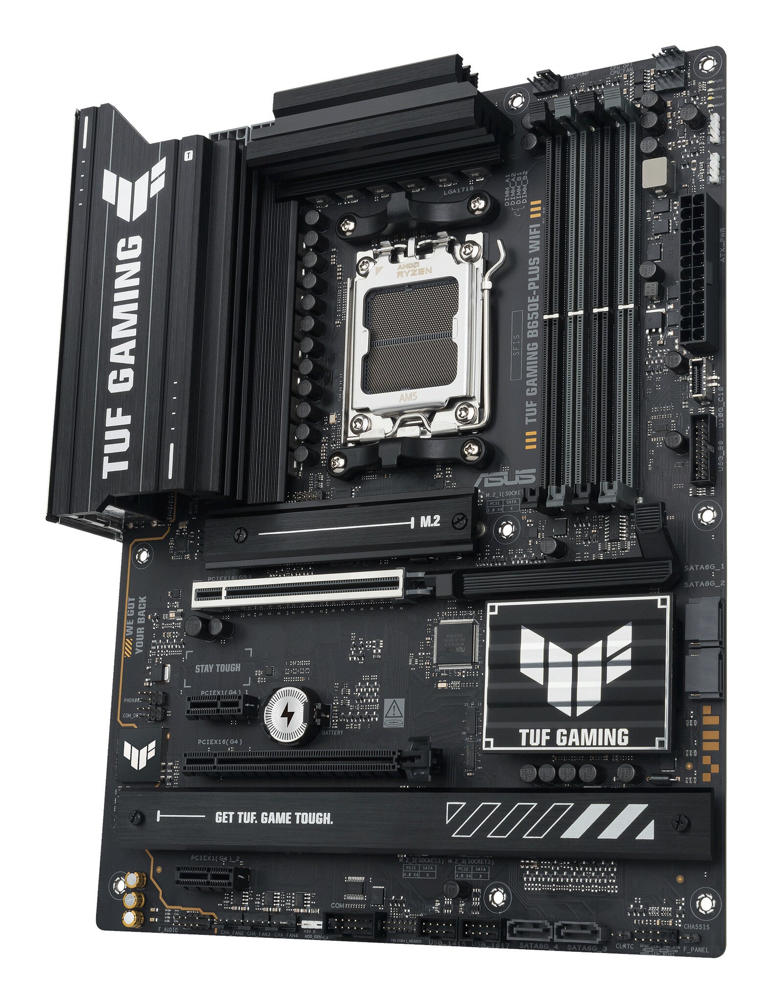 ASUS TUF GAMING B650E-PLUS WIFI takes all the essential elements of the latest AM5 Socket for AMD Ryzen™ Desktop Processors and combines them with game-ready features and proven durability. Engineered with military-grade components, an upgraded power solution and a comprehensive cooling system, this motherboard goes beyond expectations with rock-solid and stable performance for marathon gaming. TUF GAMING motherboards also undergo rigorous endurance testing to ensure that they can handle conditions where others may fail. Aesthetically, this model incorporates rugged off-black and geometric design elements to reflect the dependability and stability that defines the TUF GAMING series. This platform delivers the power and connectivity that advanced AI PC applications demand.