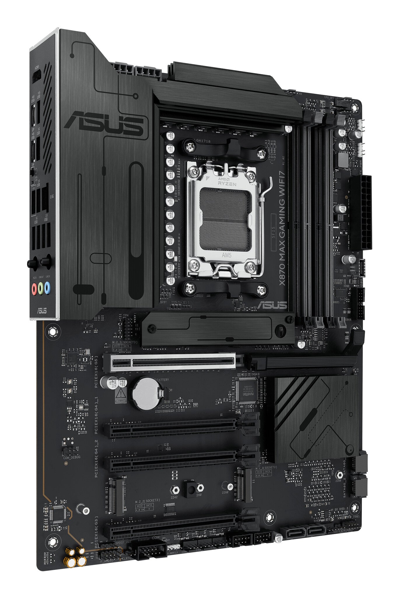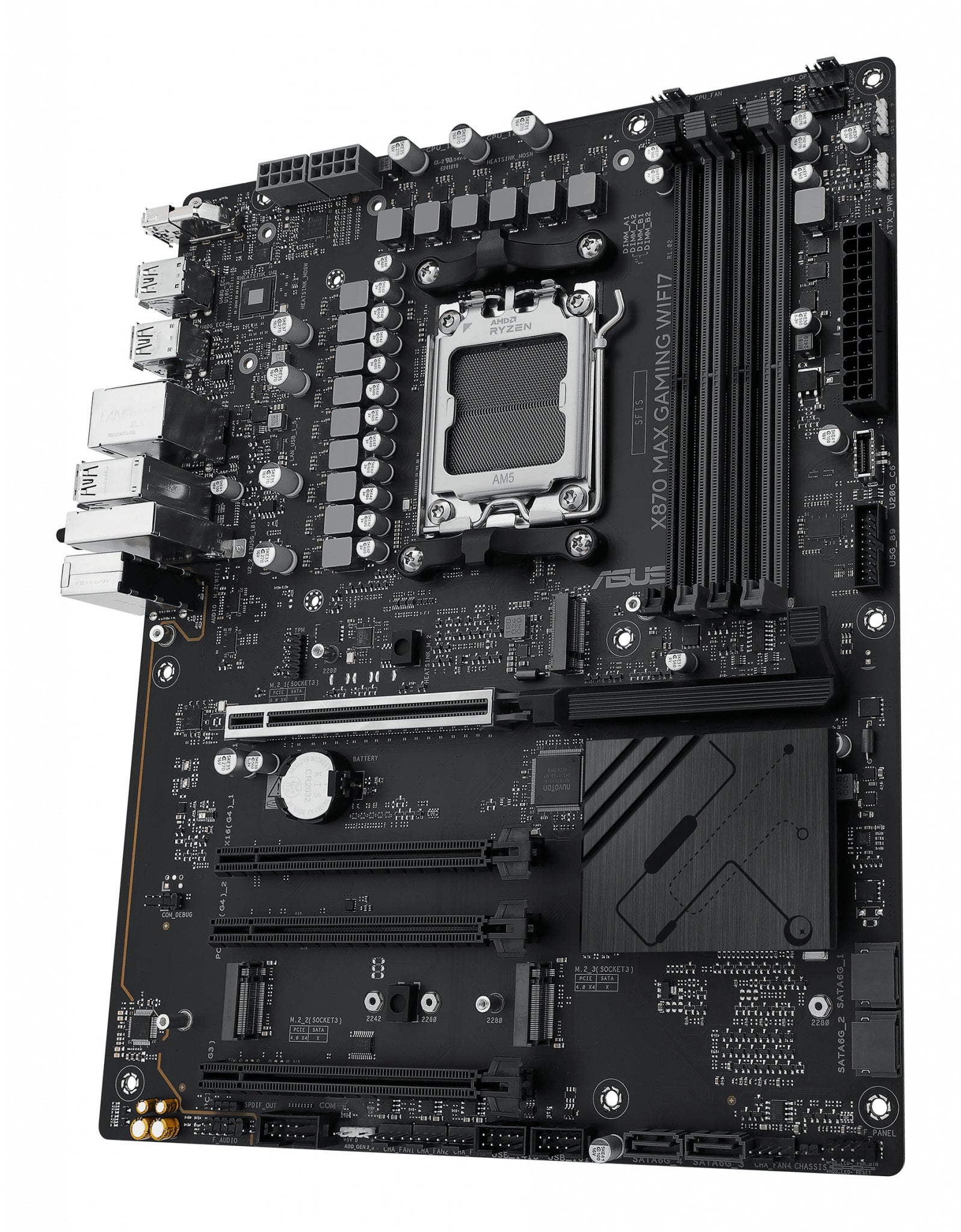ASUS X870 series motherboards are expertly engineered to unleash the full potential of AMD Ryzen™ 9000 series processors. Boasting a robust power design, comprehensive cooling solutions and intelligent tuning options, the X870 MAX GAMING WIFI7 motherboard provides users and PC DIY builders with a range of performance optimizations via intuitive software and firmware features. It’s designed to be Advanced AI PC-ready, offering the power and connectivity needed for demanding AI applications.