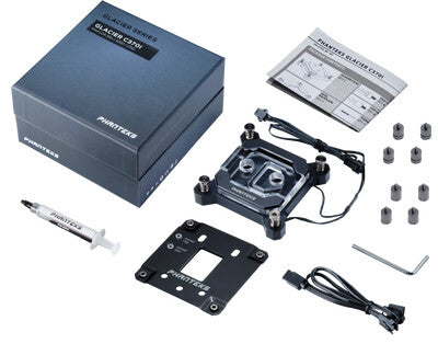 Upgrade your CPU cooling system with the Phanteks Glacier C370I water block, designed for Intel sockets 1700/1200/115x. Glacier C370I has been optimized with a jet plate design to focus the waterflow directly onto the CPU chip. Combined with an oversized fin array, the C370I CPU water block provides high performance cooling to get the most out of modern high-TDP CPUs.