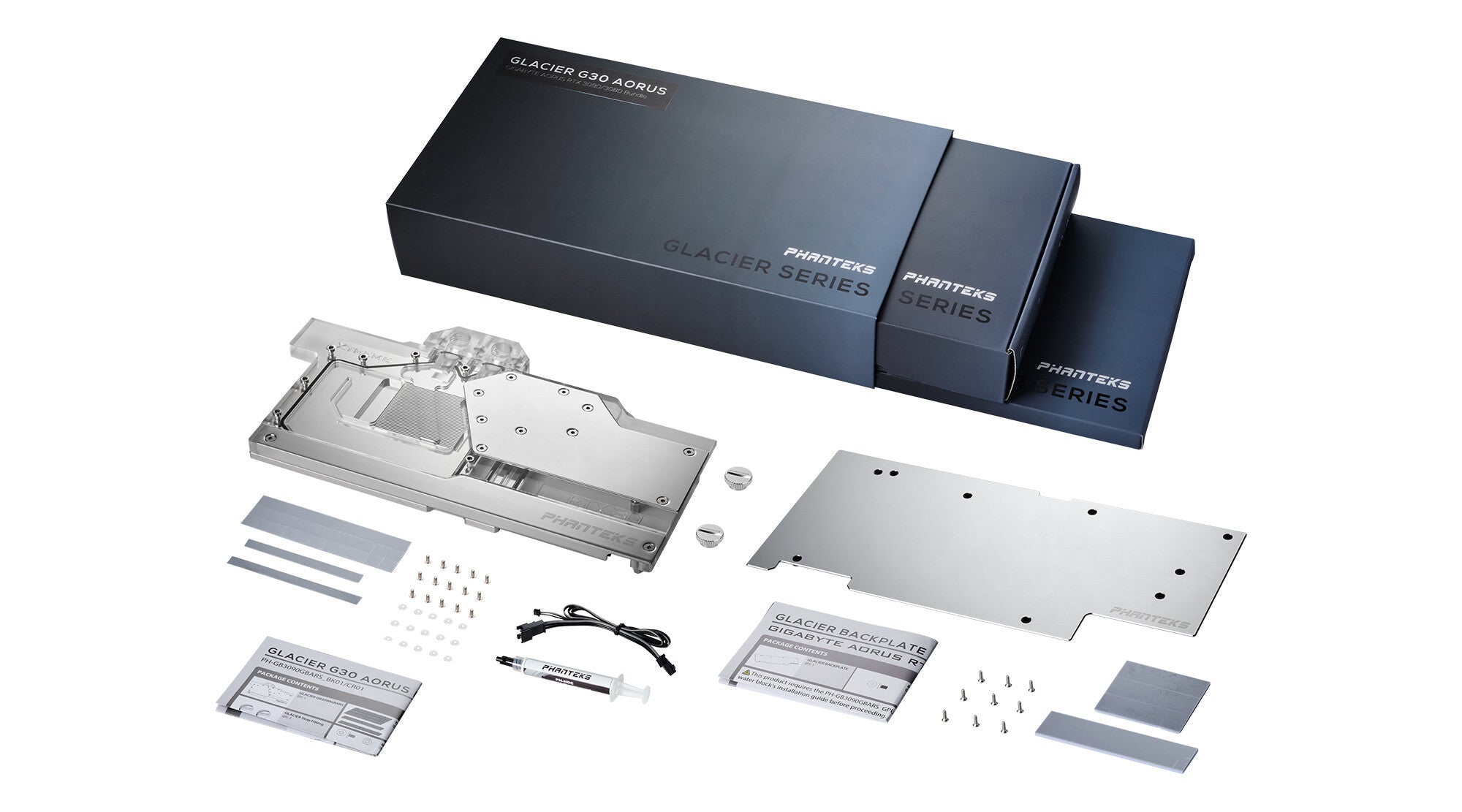 Phanteks’ Glacier G30 Aorus provides a high-performance water-cooling solution custom-designed for the latest Gigabyte Aorus RTX 3090/3080 Master/Xtreme cards. Designed using premium materials, the Glacier G30 Aorus features an aluminum cover, nickel-plated copper base, clear transparent Acrylic top, and VITON sealing from the Automotive and Aerospace Industries to ensure the best reliability and longevity.