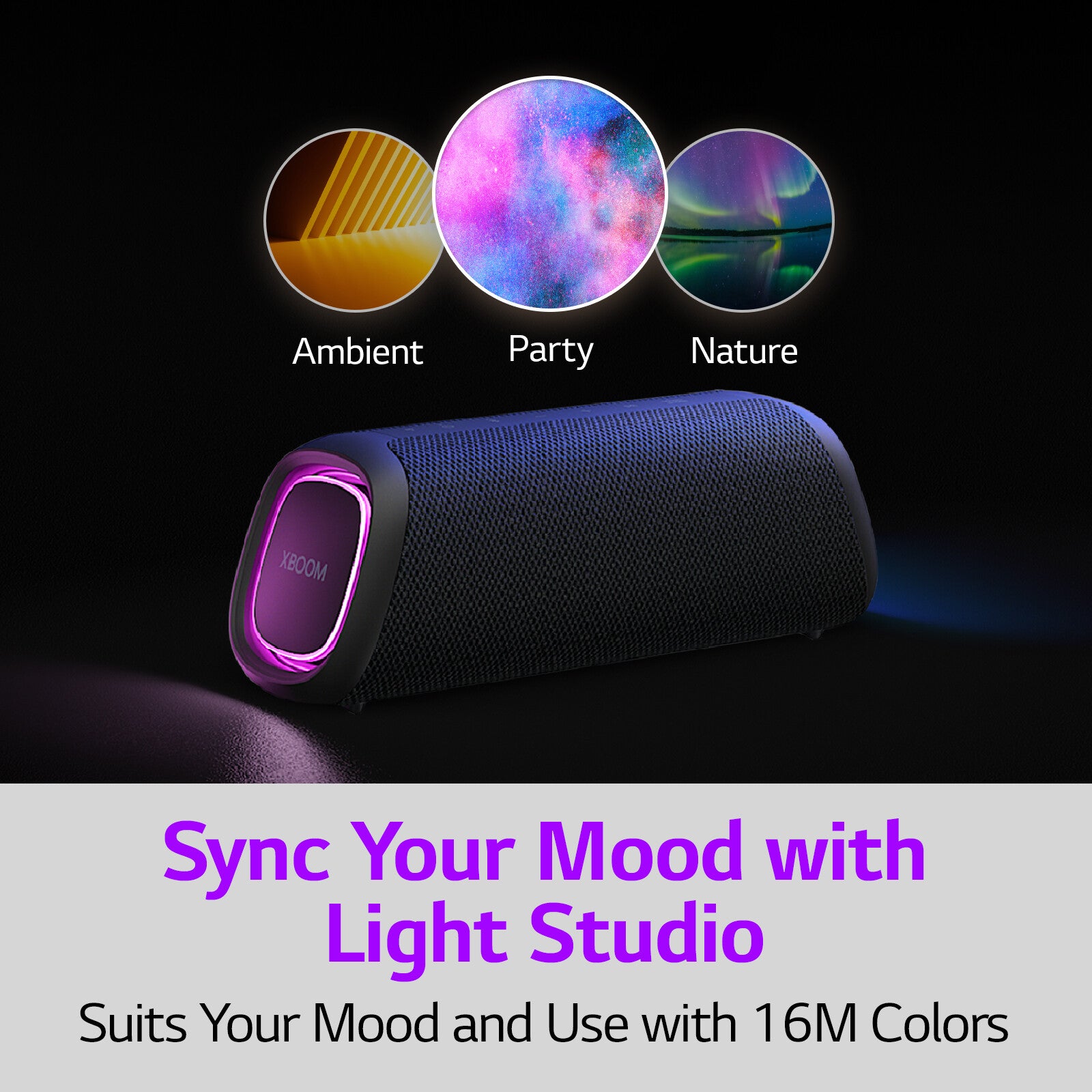 Play music, light up the mood and feel powerful sound with LG XBOOM Go.