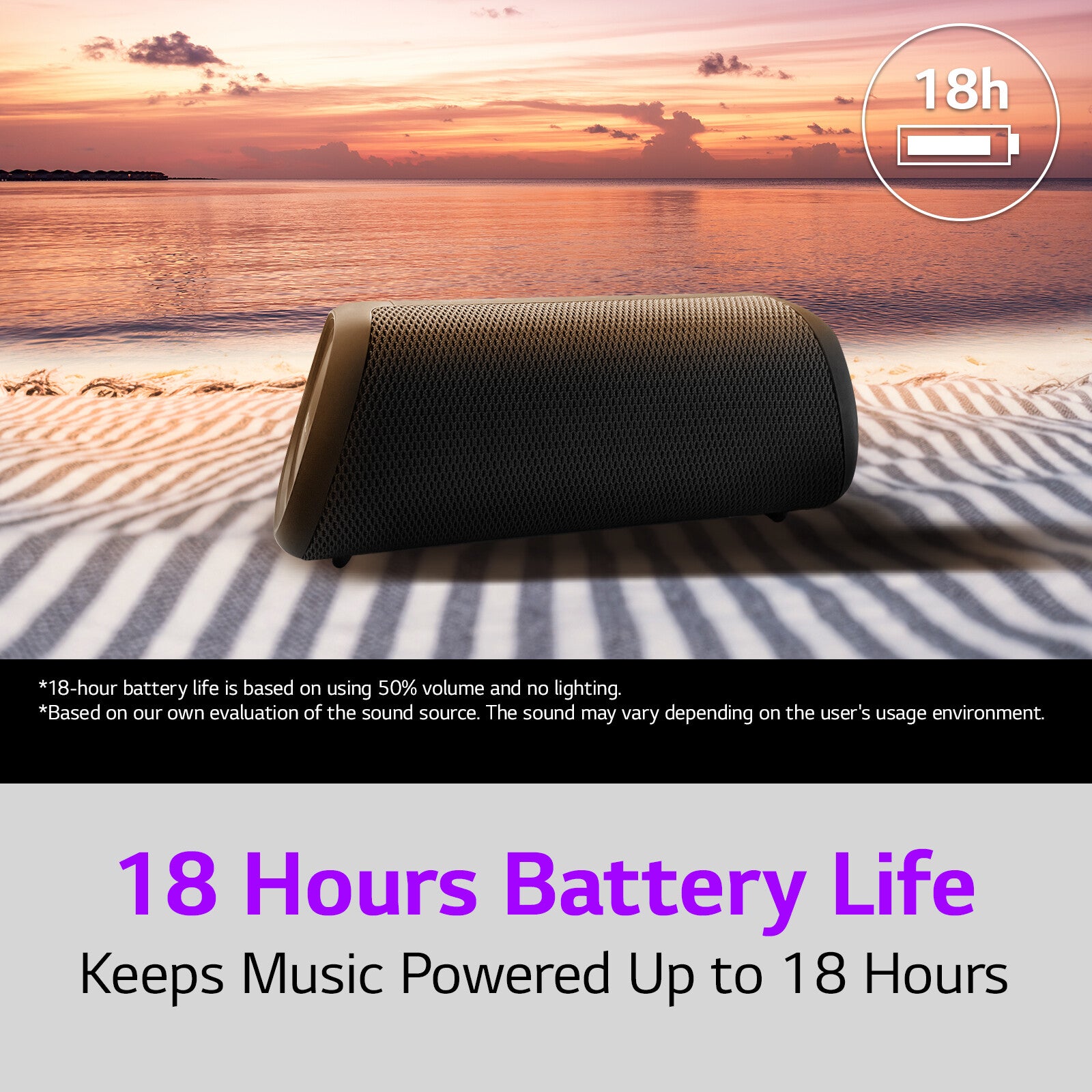 Your music will keep going from morning to evening with LG XBOOM Go XG5’s 18-hour battery.