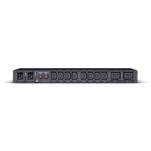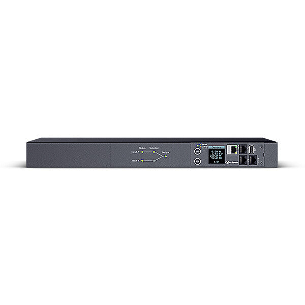 CyberPower PDU44005 provides output from a UPS unit, generator, or utility power to multiple connected devices in IT environments. Dual power cords can be plugged into separate power sources to provide redundancy to single-corded connected equipment. If the selected power source exceeds the desired thresholds or fails, the ATS PDU will automatically switch to the other power source to ensure continuous operation. The unit supports remote individual outlet control over the network, allowing administrators to turn on/off connected devices from any location.