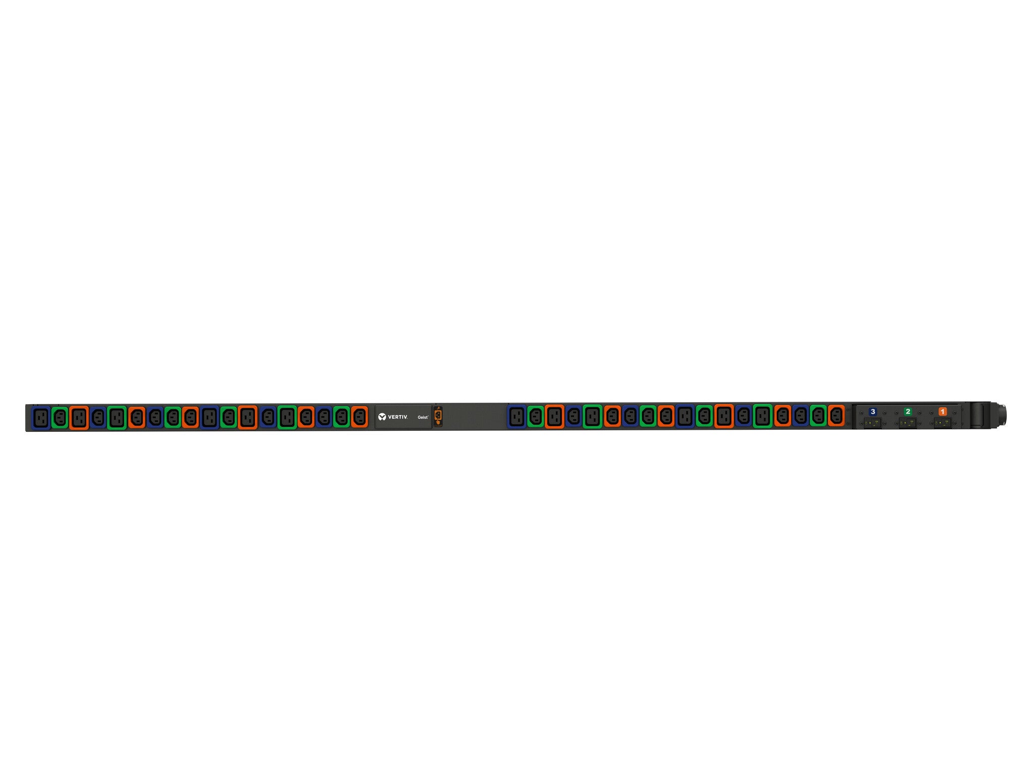 The Vertiv Geist UPDU is a versatile rack power distribution unit featuring a universal input and detachable Facility Side Cable (FSC - sold separately). The UPDU supports common AC power configurations ranging from 16A-60A and 120V-415V. Available in basic to intelligent models featuring advanced remote power monitoring, environmental monitoring, and optional outlet level switching. The UPDU simplifies critical IT infrastructure deployments by allowing a single model to be installed around the world.