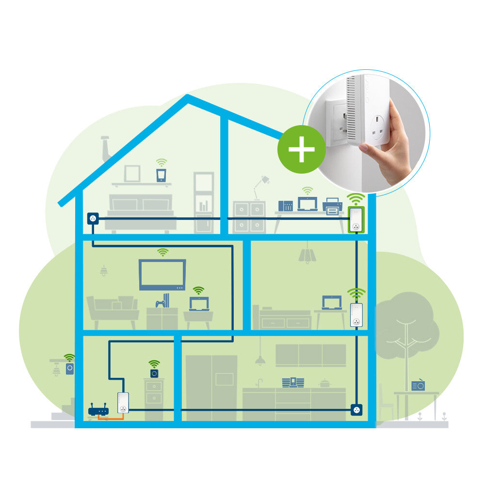 - Unstoppable: During signal transmission via power line, the signal effortlessly passes through walls and ceilings – for strong Wi-Fi.