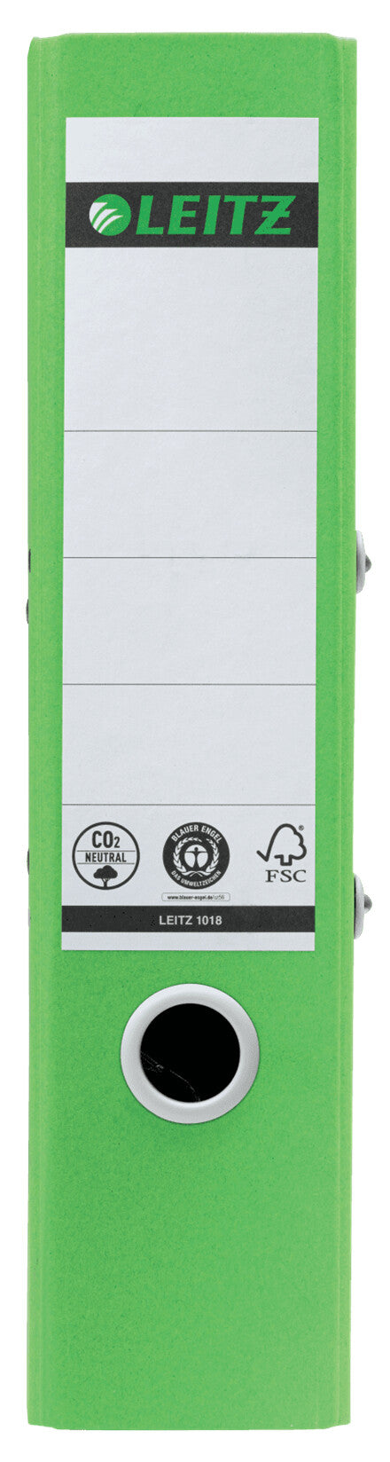 Eye-catching, premium quality Lever Arch File made from recycled materials which can be disassembled for complete recycling. 80mm wide and suitable for A4. 100% recyclable and with FSC & Blue Angel environmental certification. This robust LAF perfectly complements other products from the Leitz Recycle range and is made to last. Modern and contemporary green stationery that will look great at home and in the office. With the eco friendly Recycle range from Leitz you can both improve your office environment – and the environment of our planet.