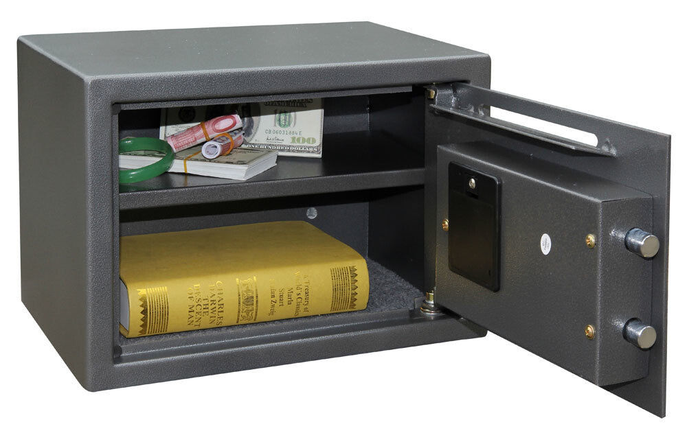 - LOCKING - Fitted with an advanced ‘user friendly’ electronic locking with high security anti-tamper or bounce solenoid locking system. For added peace of mind these safes are fitted with a key override facility (2 keys supplied).