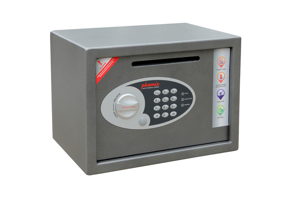- The SS0800ED has an advanced ‘user friendly’ electronic locking with high security anti-tamper or bounce solenoid locking system. For added peace of mind these safes are fitted with a key override facility (2 keys supplied).