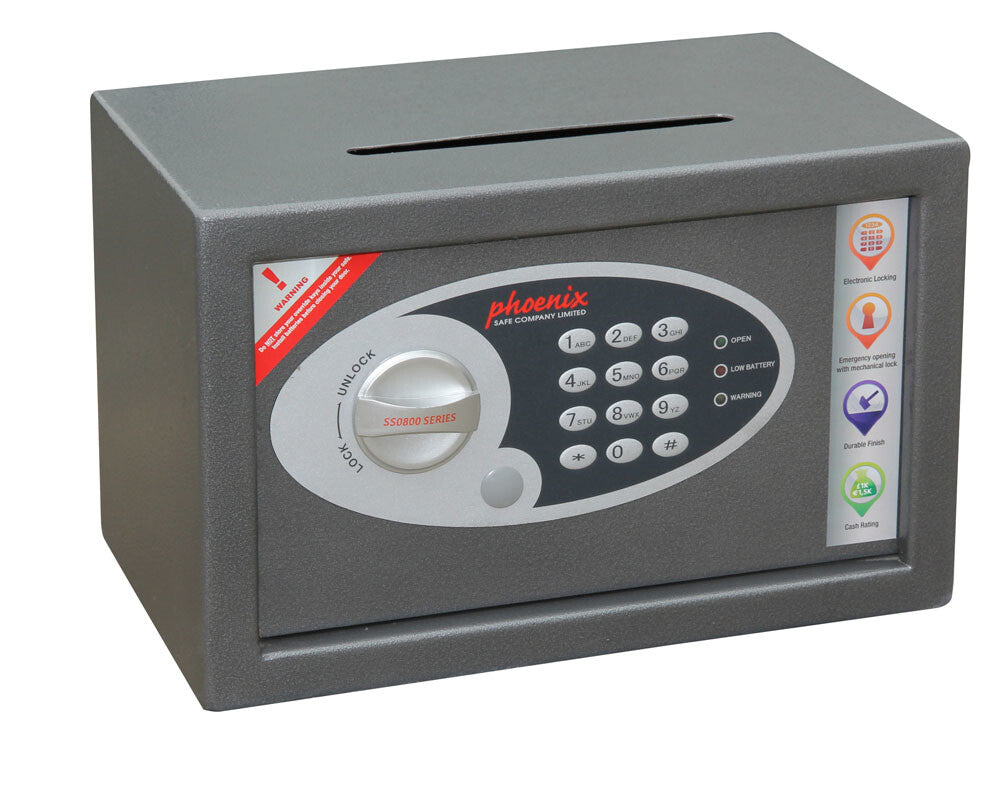 THE PHOENIX VELA DEPOSIT SERIES is designed for use at home or in the office for storage of valuables, cash and important documents. With its high quality key-lock or user friendly electronic lock it is ideal for multiple applications.