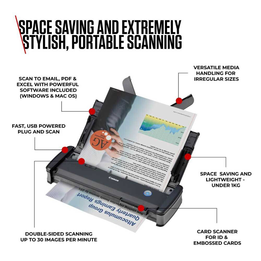 - Productive mobile scanning with 20-sheet ADF