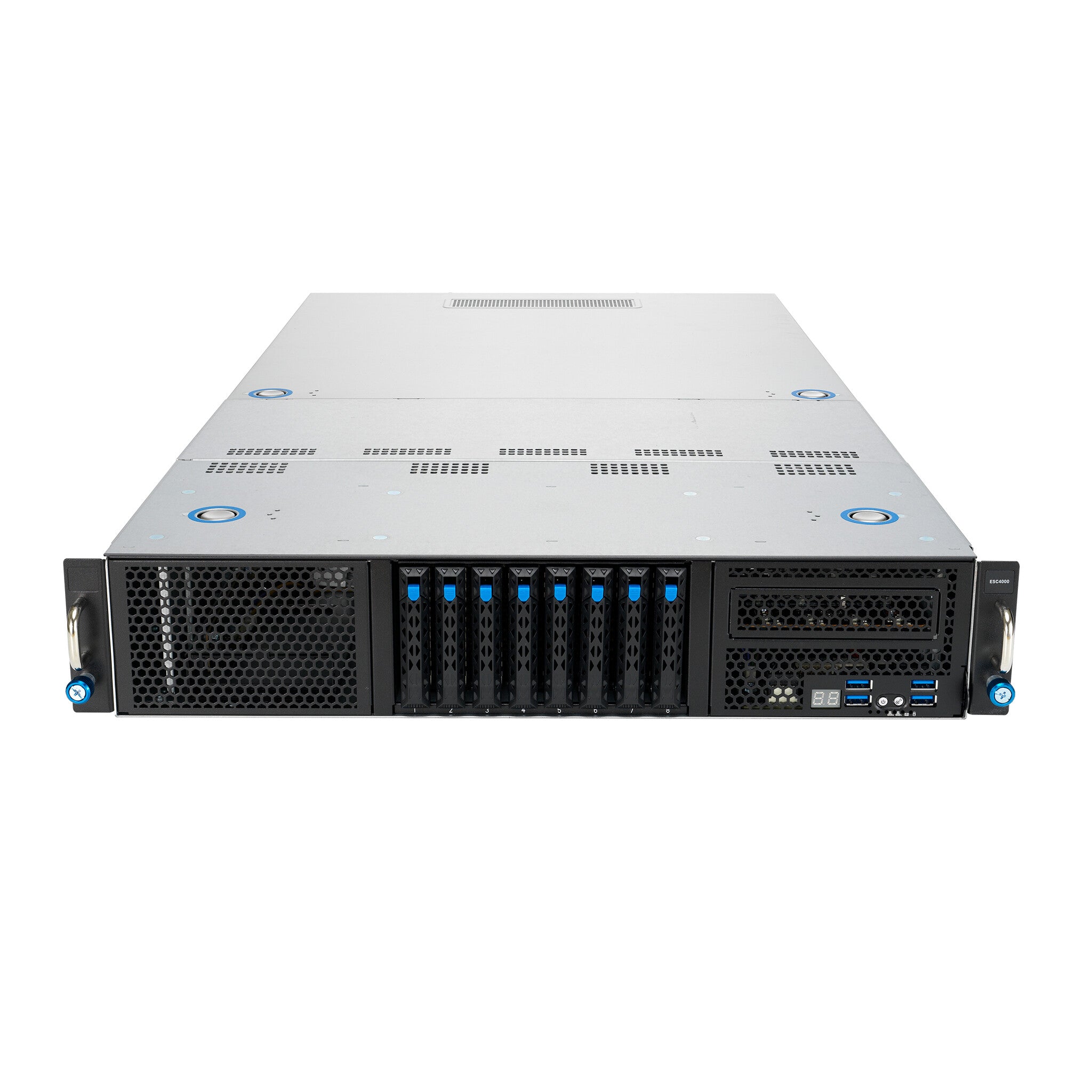 To effectively manage the storage demands of growing amounts of data, ESC4000-E10S has a dense chassis design that accommodates up to eight 2.5-inch drives, including up to four NVMe SSDs support and one onboard 2280-length M.2 SSD to allow faster data transfer speeds for OS installation.