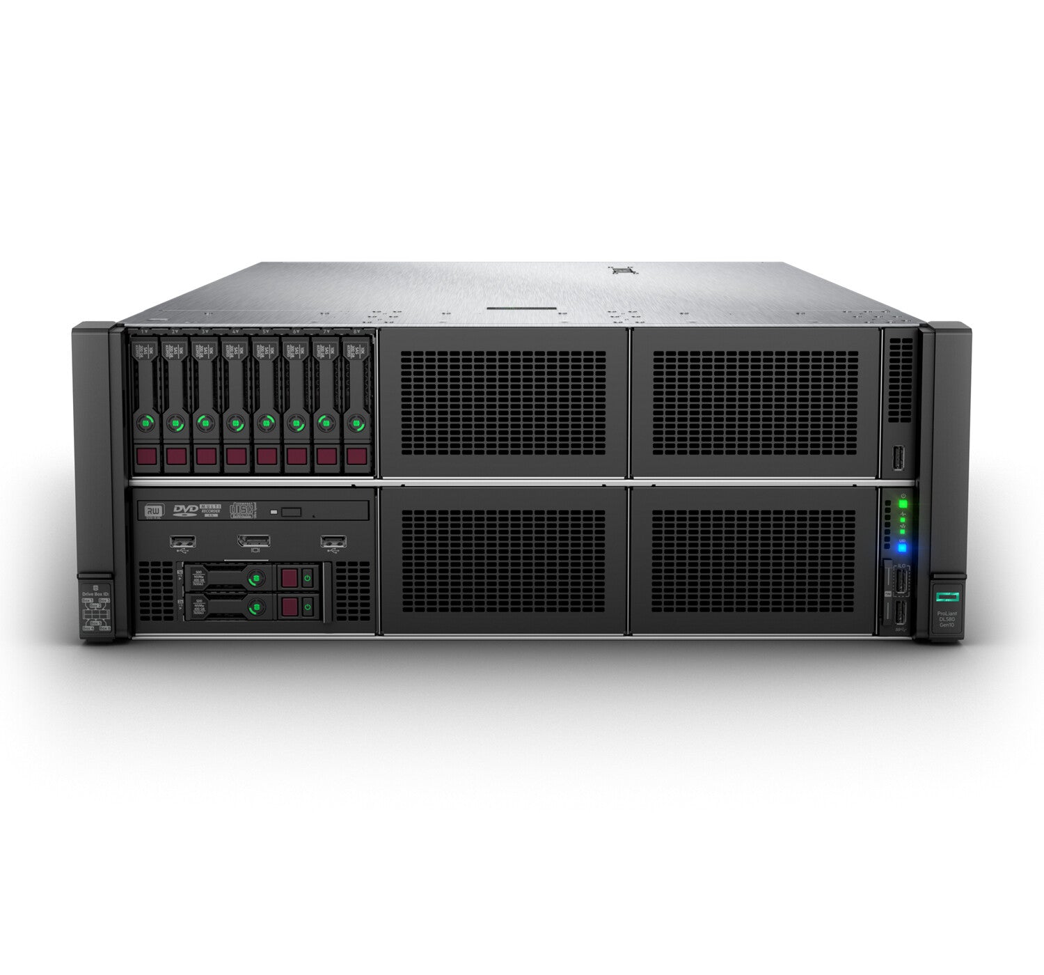 - HPE ProLiant DL580 Gen10 server has a flexible processor tray allowing it to scale up from one to four processors as needed, saving on upfront costs and the flexible drive cage design supports up to 48 Small Form Factor (SFF) SAS/SATA drives and a maximum of 20 NVMe drives.